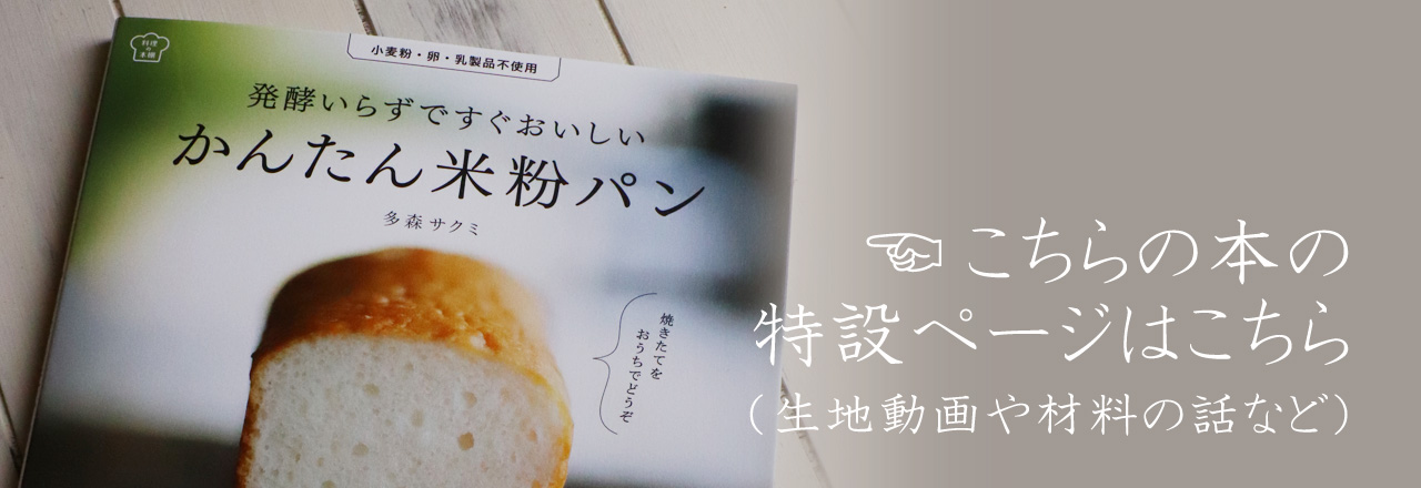▼フライパンでできる 米粉のパンとおやつ小麦粉なしで驚きのおいしさ!卵・乳製品・オーブン不使用!!フライパンですぐに作れる グルテンフリーなパンとおやつの決定版。(出版:エムディエヌコーポレーション) ⇒Amazon ⇒楽天 |